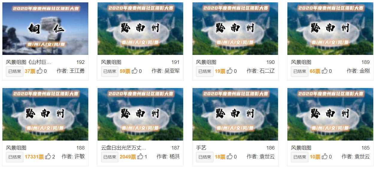 通知下发后,各相关单位和部门积极响应、迅速行动、精心谋划,于2020年6月全面启动,历时5个月,在全省范围内组织实施了以“多彩贵州 文化荟萃”为主题,以原创诗词、摄影作品、书画作品为载体,展现贵州山水之美和风土人情,记录贵州经济社会发展取得的巨大成就,积极引导社区居民践行社会主义核心价值观,弘扬“团结奋进、拼搏创新、苦干实干、后发赶超”的新时代贵州精神。此次大赛共收到近千个作品,百余万人次通过乐之学习网——贵州社区教育学习平台参与线上投票。经过初赛、复赛、网上投票、专家打分等环节,产生一等奖作品25个,二等奖作品65个,三等奖作品110个,优秀组织单位18个,组织工作先进个人27名。贵州省2020年全民终身学习活动周开幕式上将对获奖单位和个人予以表彰,并展示部分获奖作品。