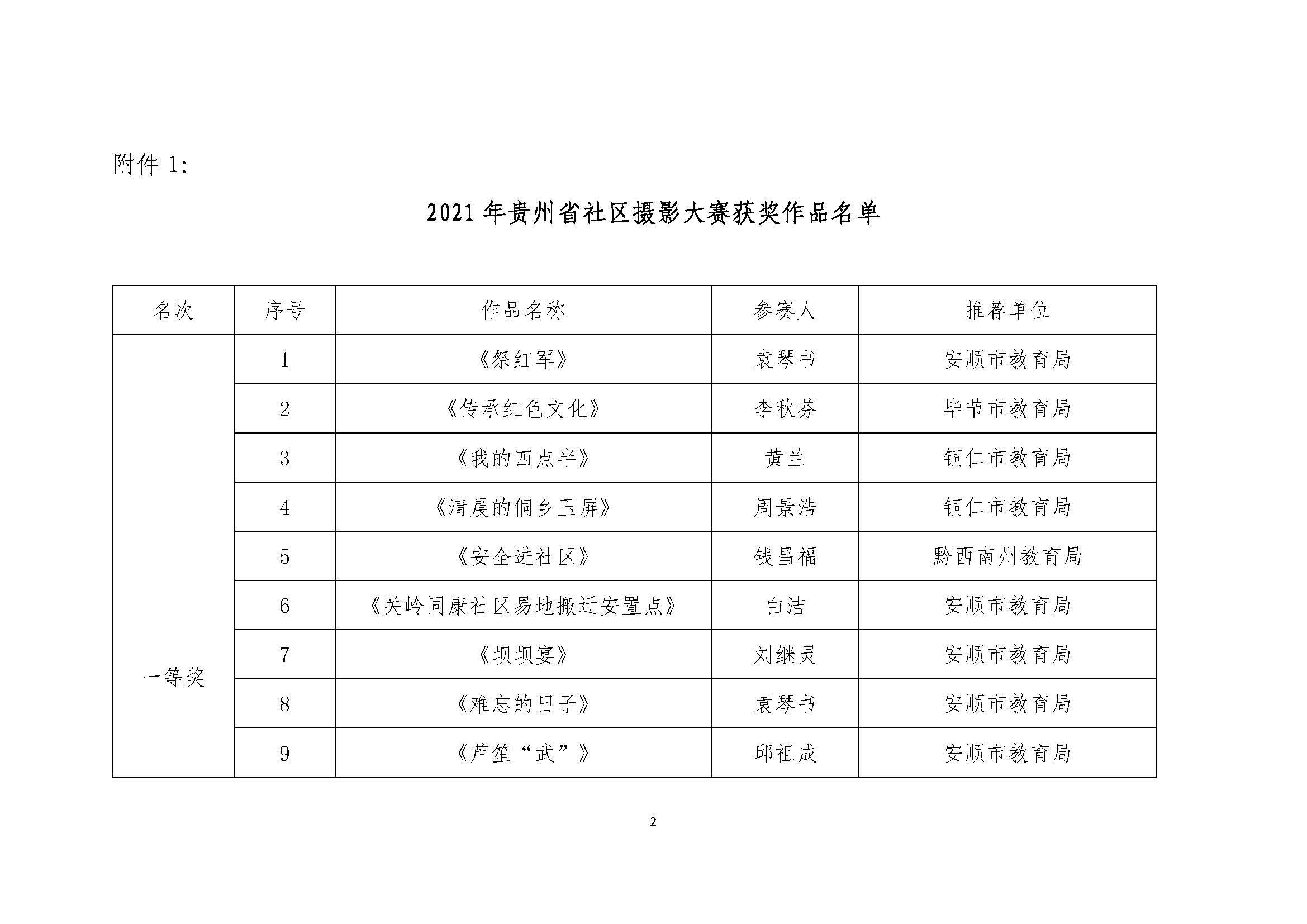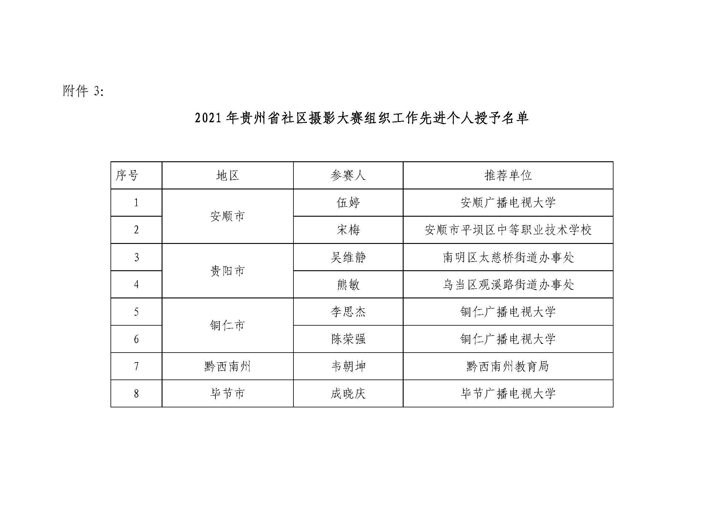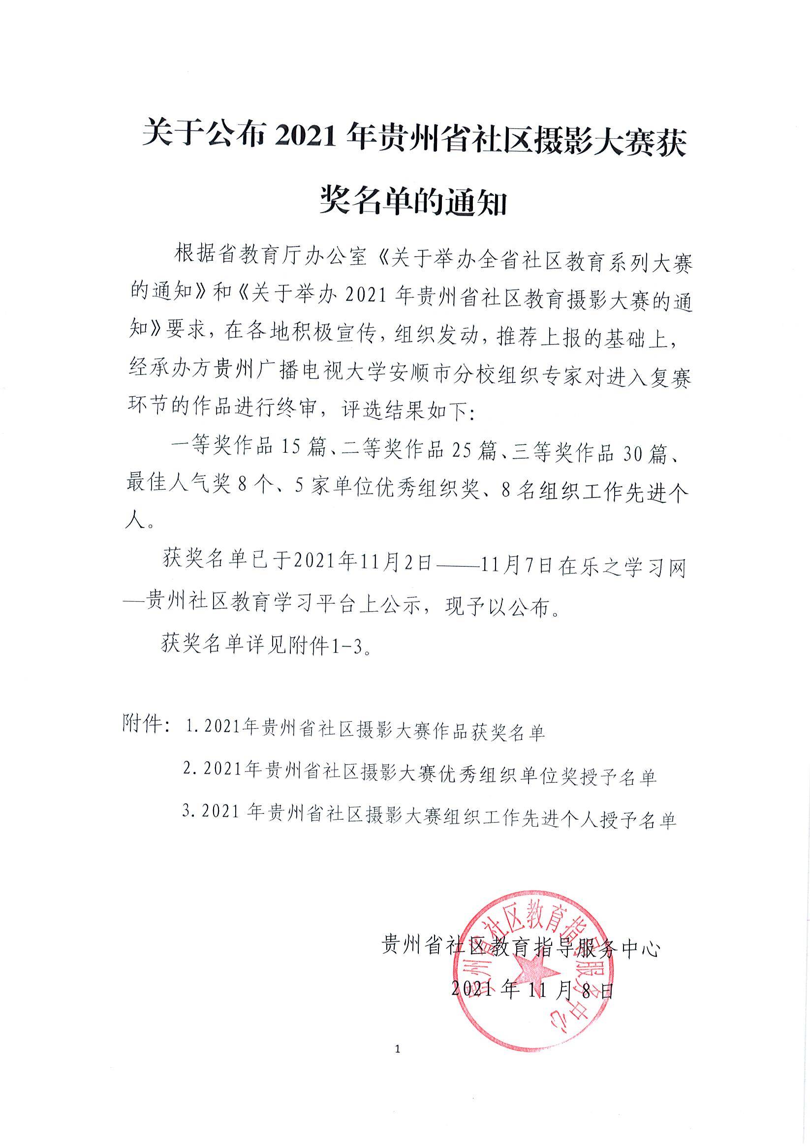 关于公布2021年贵州省社区摄影大赛获奖名单的通知