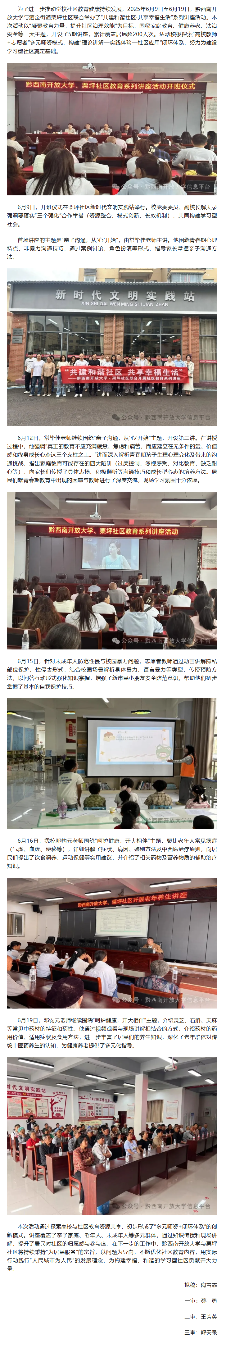 “共建和谐社区•共享幸福生活”黔西南开放大学社区教育系列讲座活动完美收官