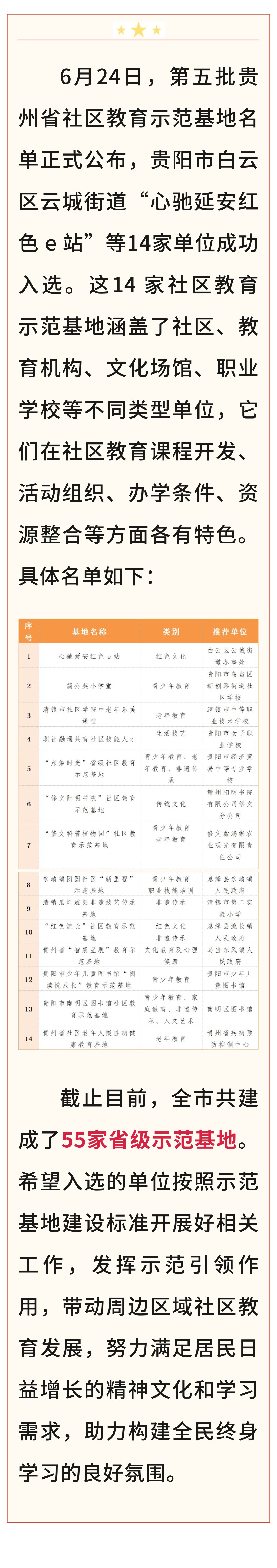 基地建设丨14 家单位入选!第五批贵州省社区教育示范基地名单揭晓