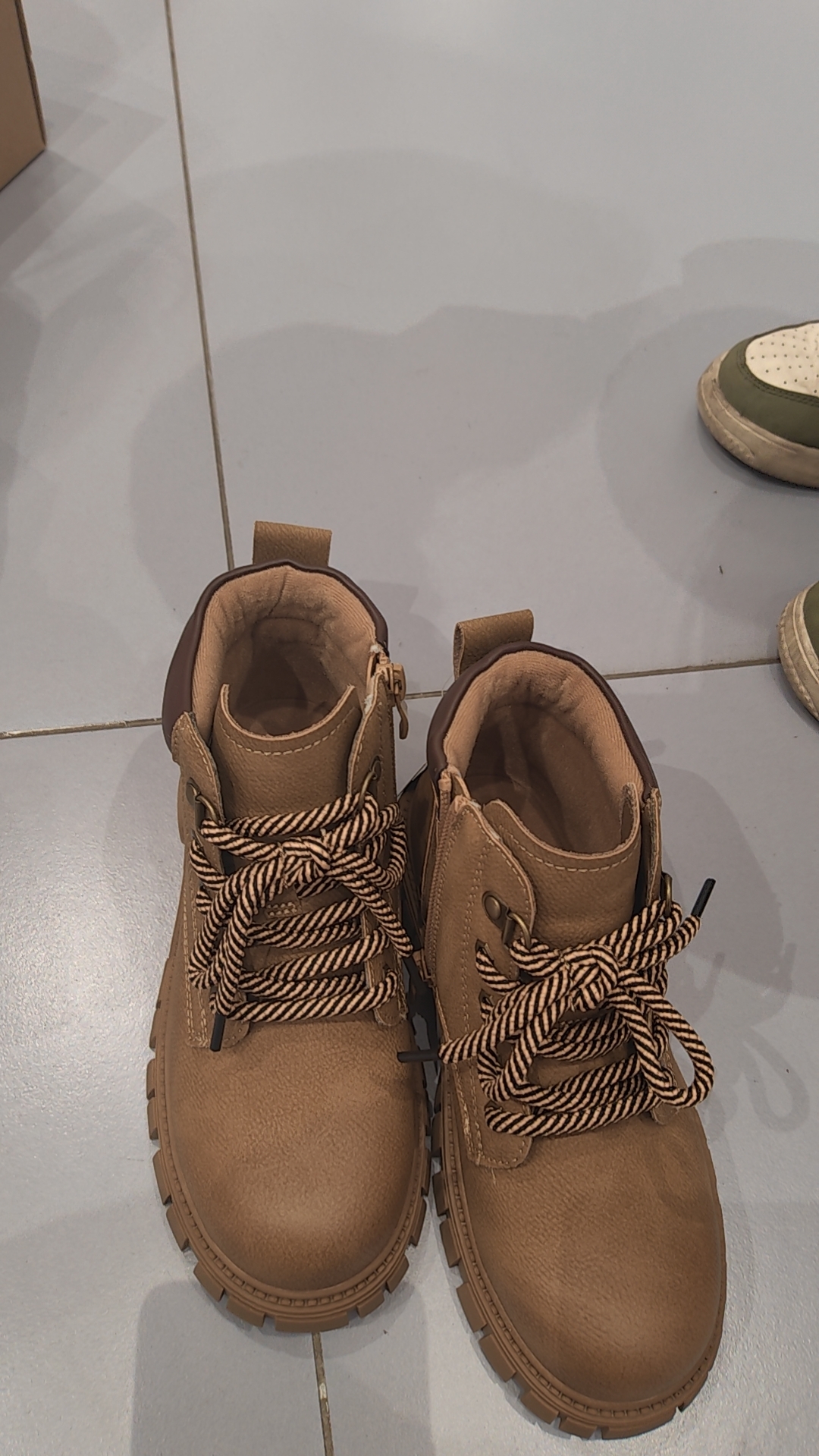 儿子非常满意他选的鞋,他说他想要一双有鞋带的鞋,现在两种都有了,不错不错[emoji][emoji][emoji]