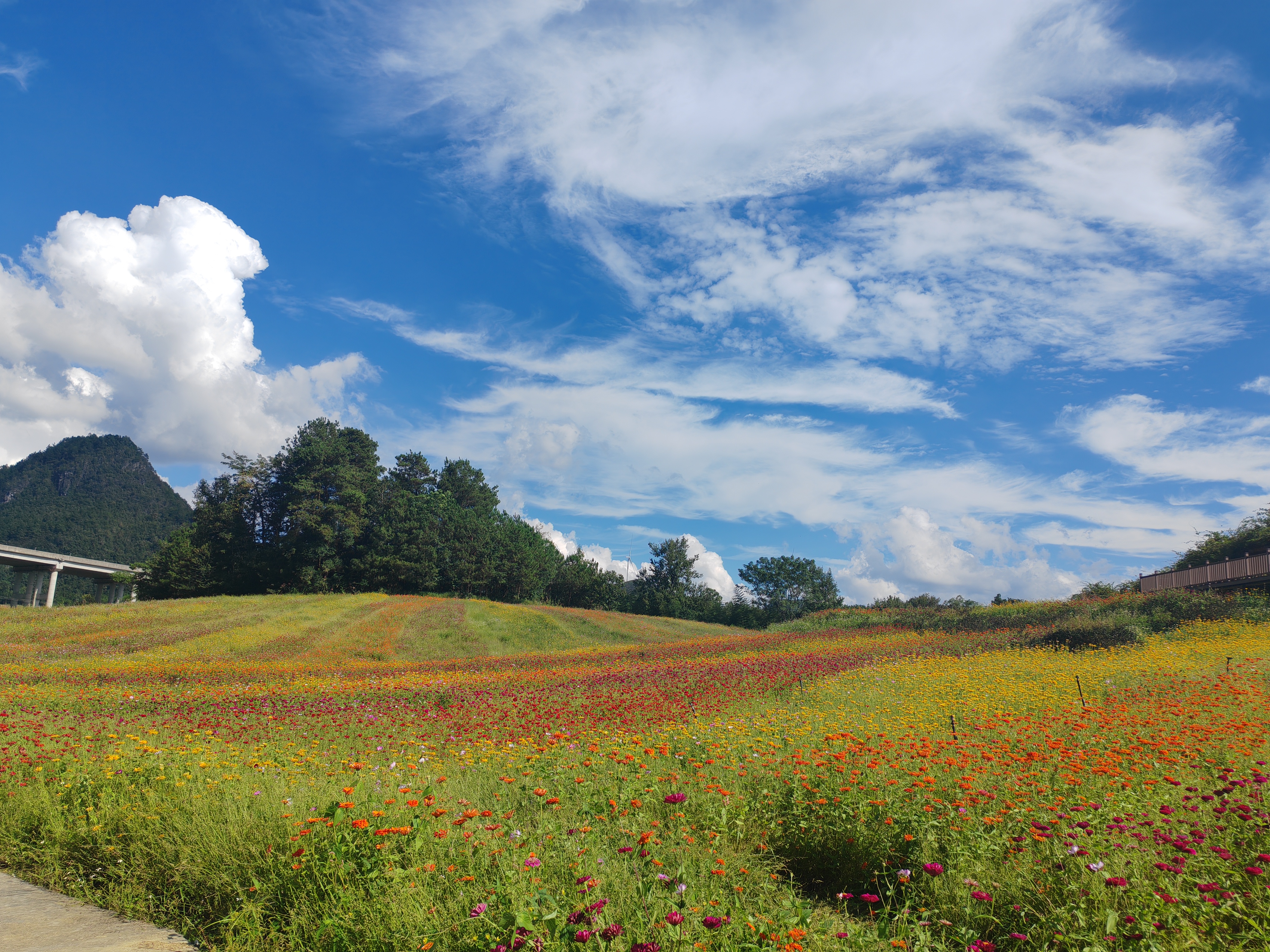 蔚蓝天空下美丽的格桑花