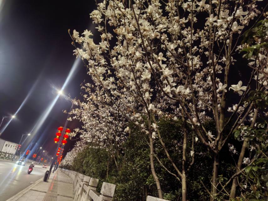 回家路上一路的玉兰花